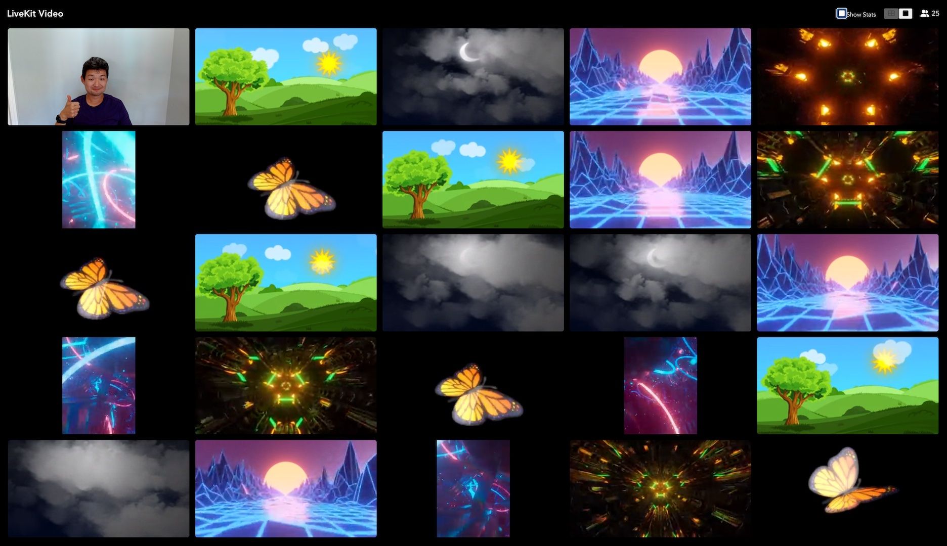 How can you fetch 25 HD videos simultaneously? The short answer is: you don’t. Ignoring that most clients lack the compute to decode that many 720p streams, few networks can steadily pull 50Mbps of data. To handle that many publishers, we have to reduce the amount of bandwidth allocated to each one. We can do so by reducing resolution and frame rate, but by how much? There's a balance to strike between performance and perceived quality.
